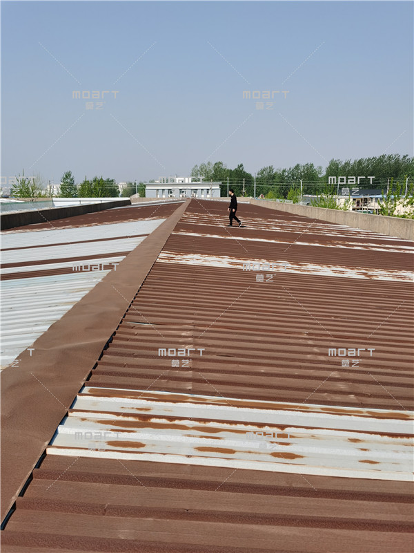 彩鋼瓦的表面必須電動打磨干凈無灰塵、無油膩、無污染、無銹蝕;噴漆之前 需要對屋面進行大掃除,把上面灰塵清理干凈。
